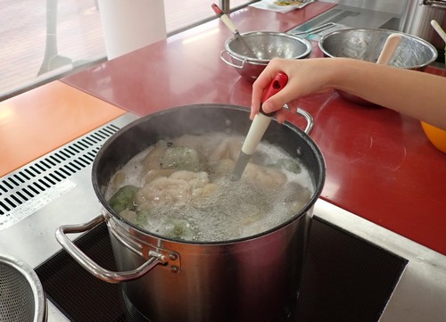 こんにゃくの素の粉を水に混ぜて、かなりの時間をかけて混ぜ続けてペースト状にしてお湯に入れて茹でるという作業で所要時間は1時間ほどでした。